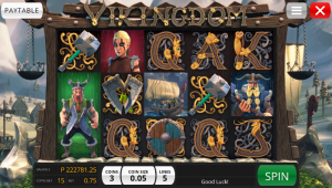 Three or more Scatter symbols, anywhere in the reels, activates Free Spins. Wins are doubled during free spins. Other symbols include Rollo, a blonde-bearded Viking, Karve, the ship, an axe, maul, shield, A, K, Q, Q and J.